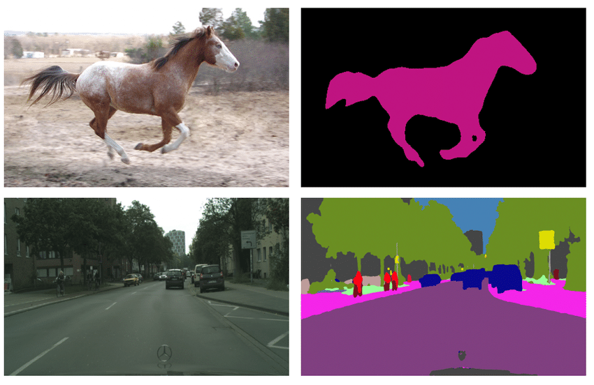 Semantic segmentation is a computer vision task in which an algorithm assigns a label or class to each pixel in an image. For example, semantic segmentation can be used to identify the boundaries of different objects in an image, such as cars, buildings, and trees. The output of semantic segmentation is typically an image where each pixel is colored with a different color or label depending on its class.